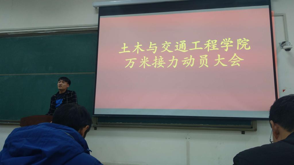 (通讯员:杨国洲)万树寒无色,南枝独有花。12月5日晚,土木与交通工程学院万米长跑接力赛动员大会在10B208教室举行。学院党总支副书记尹振羽、团学办主任杨国洲以及全体运动员出席会议。