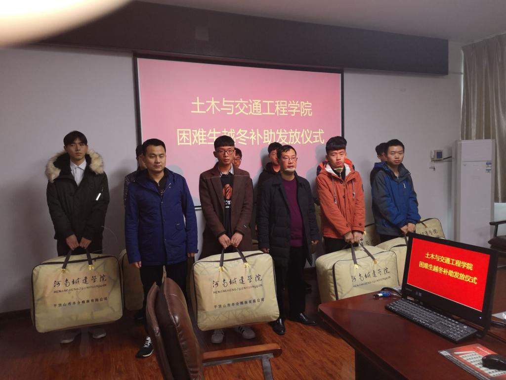 尹振羽表达了对困难学生的深切关怀,他强调学校和学院一直关心学生的学习和生活问题,学院将不断完善资助政策,竭尽全力帮助更多需要帮助的学生,鼓励学生努力学习,乐观自信,奋发向上,不断充实和完善自我,学会融入集体,随后把棉被送到每一位同学的手中。同学们表示在今后的学习和工作中一定会正确面对困难,奋发向上,砥砺前行,学有所成。