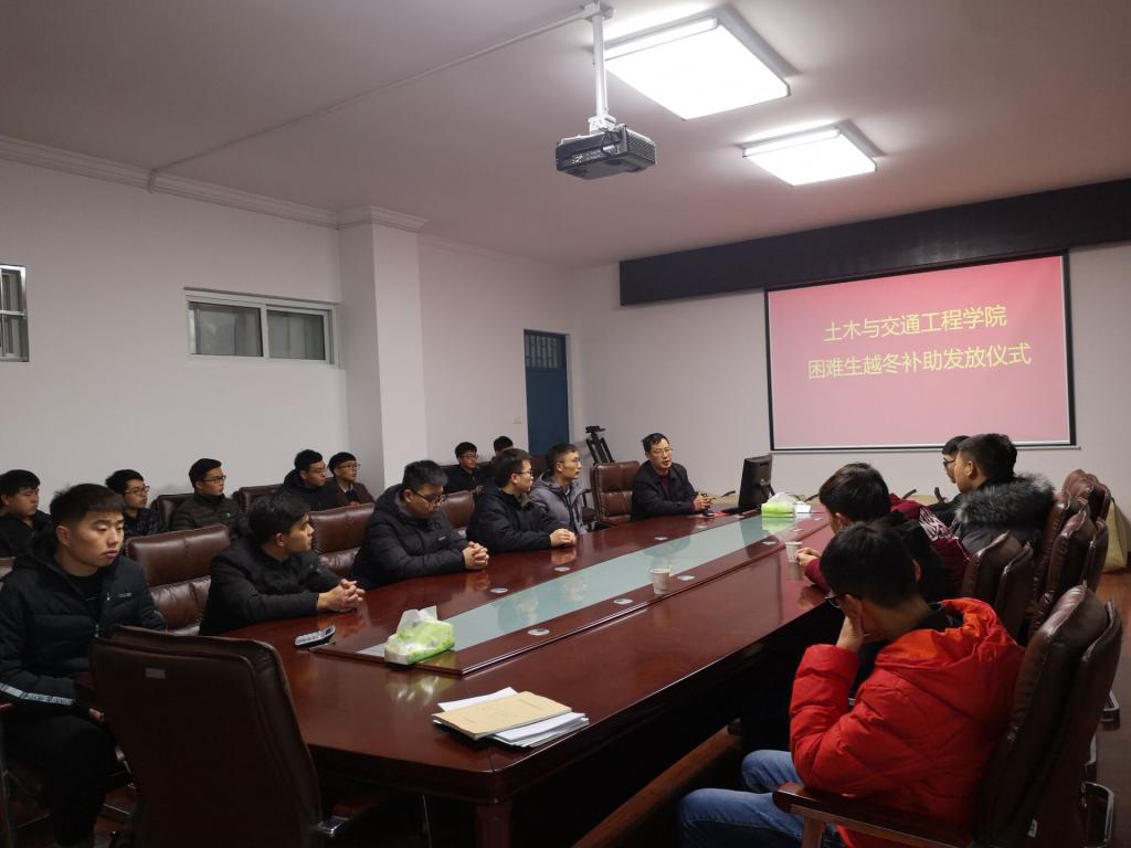 (通讯员:付小丽 杨国洲)为深入贯彻党和国家有关高校家庭经济困难学生资助政策,确保困难学生温暖过冬,安心学习,土木与交通工程学院于12月5日下午10号楼C座学院会议室举行了困难生越冬物资发放仪式。土木与交通工程学院党总支副书记尹振羽及新生辅导员出席了此次活动。
