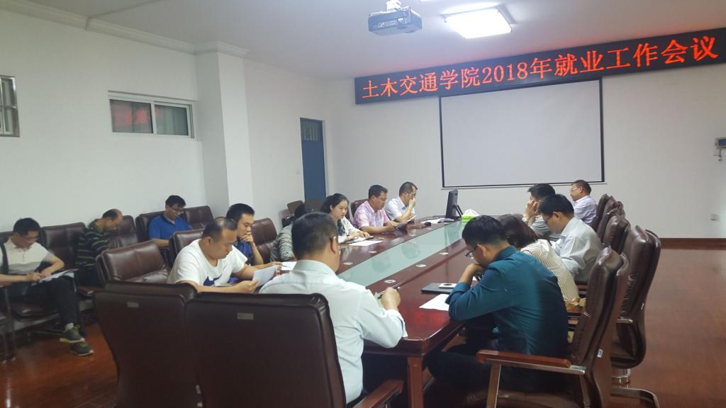 (通讯员:付小丽)为认真做好2018届毕业生就业工作,5月9日下午15:00我院在10号楼C203召开土木与交通学院2018年就业工作会议。学院领导班子成员及各教研室主任、毕业班辅导员出席会议。会议由学院党总支副书记尹振羽主持。