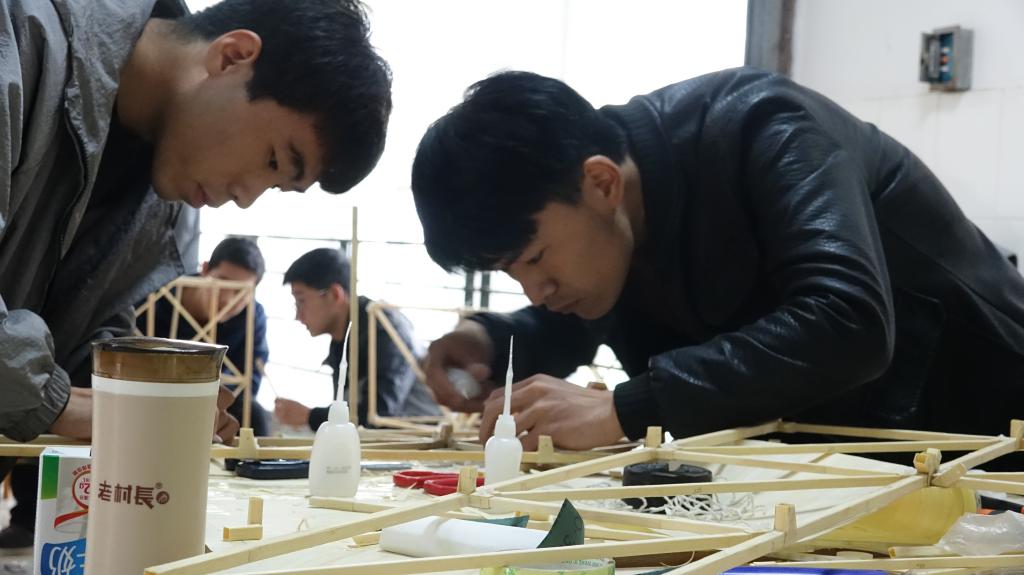 比赛分为杆件制作、结构装配、模型承重与加载等项目,比赛过程中同学们有条不紊的制作参赛作品,他们认真测量,仔细裁剪,一丝不苟的进行着模型的构建。15日下午,各小组进行了模型三级加载测试,此届结构模型设计竞赛也圆满成功。