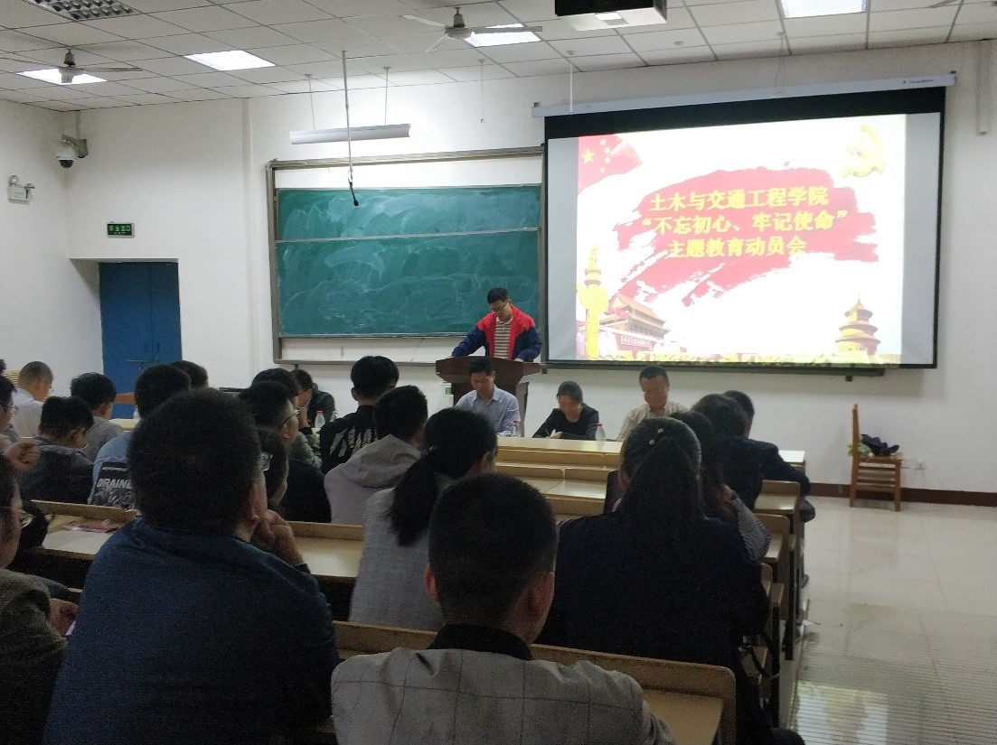 (通讯员 范哲哲) 为了贯彻落实好中央、省委和校党委关于“不忘初心、牢记使命”主题教育工作部署安排,土木与交通工程学院于9月17日下午在10#B105召开“不忘初心、牢记使命”主题教育部署动员会。校“不忘初心、牢记使命” 主题教育第一巡回指导组组长马明江同志、指导组成员李阳同志、周勃同志出席会议,土木与交通工程学院领导班子和全体师生党员参加会议。会议由我院党总支副书记宋帅奇主持。
