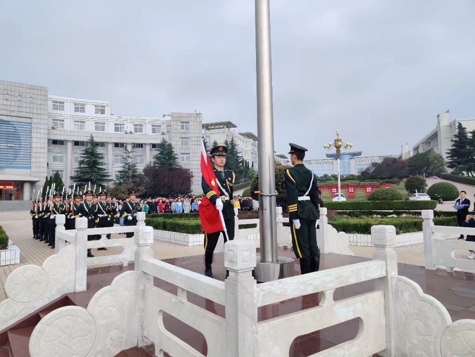 七点整,五星红旗在庄严的义勇军进行曲的伴奏下缓缓升起,全体人员齐唱国歌,行注目礼。学生代表王梓硕在国旗下进行演讲,他呼吁说青年是整个国家和民族的希望,作为新时代的青年,应该不忘初心,努力奋斗、开拓创新、爱国敬业,当代青年应与祖国同呼吸,与时代同奋进,与中原共出彩的爱国主义情怀和精神风貌。