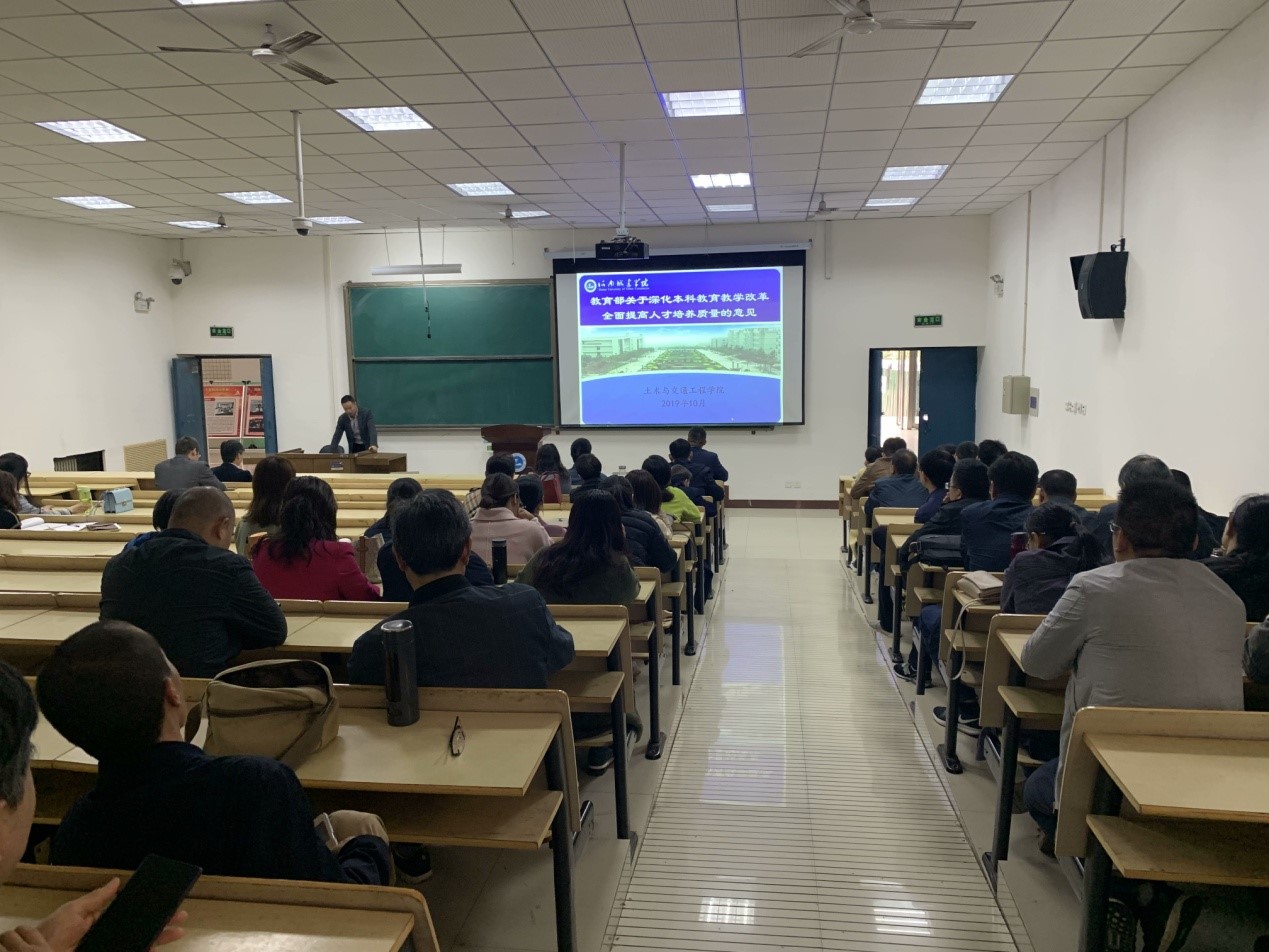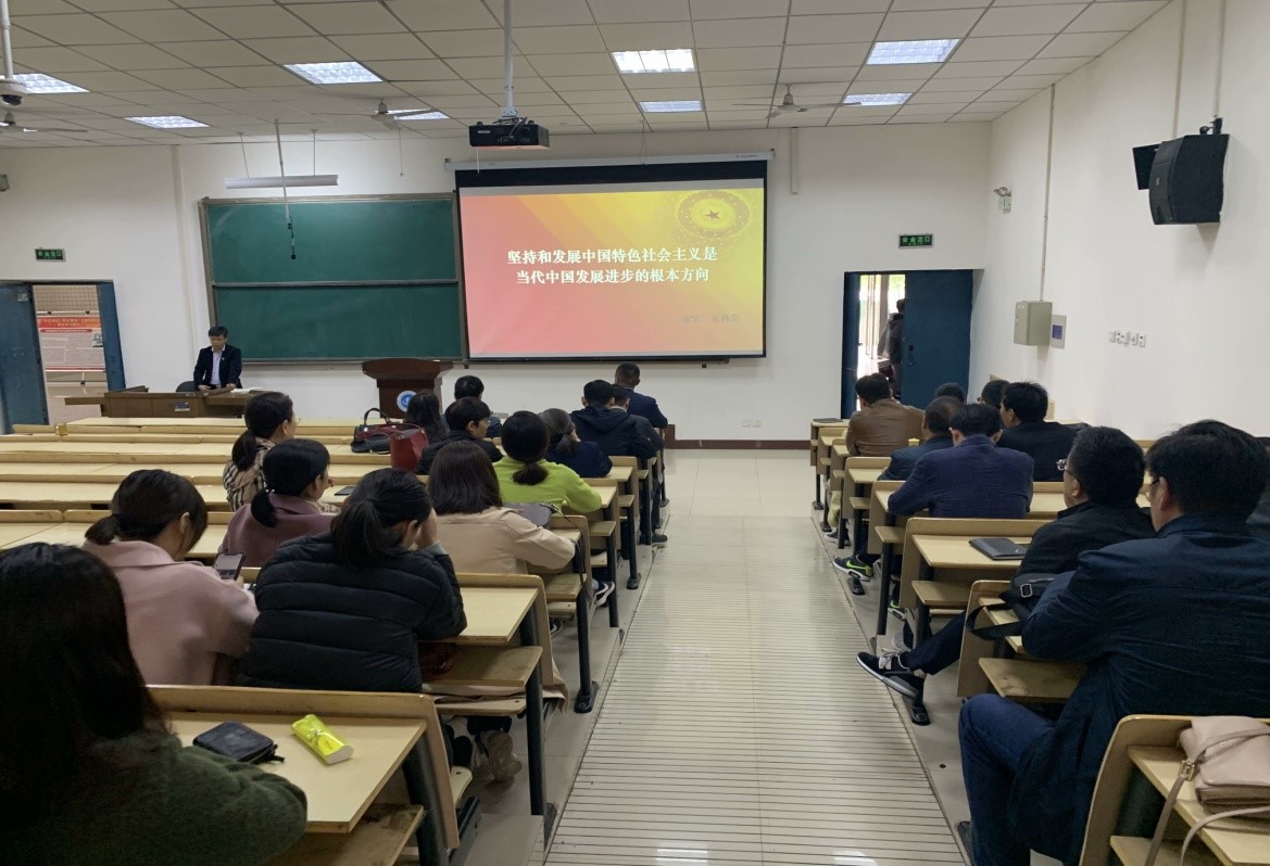 (通讯员 宋明磊)为贯彻落实中央精神和省委要求,确保主题教育调研活动扎实推进、取得成效,10月15日下午土木与交通工程学院组织全体老师在10#B105教室召开“不忘初心、牢记使命”主题教育专题学习,党总支副书记宋帅奇与学院副院长朱凯分别以《坚持和发展中国特色社会主义是当代中国发展进步的根本方向》、《教育部关于深化本科教育教学改革全面提高人才培养质量的意见》为题进行了专题讲授。