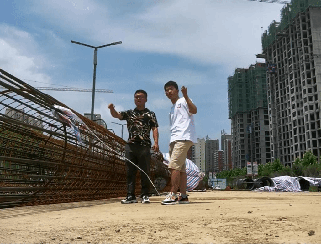 图为人民沟桥梁建设项目,服务队员向施工队负责人张某了解项目进度