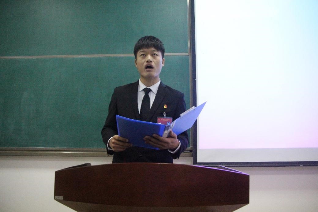 学生会主席买轩做工作汇报