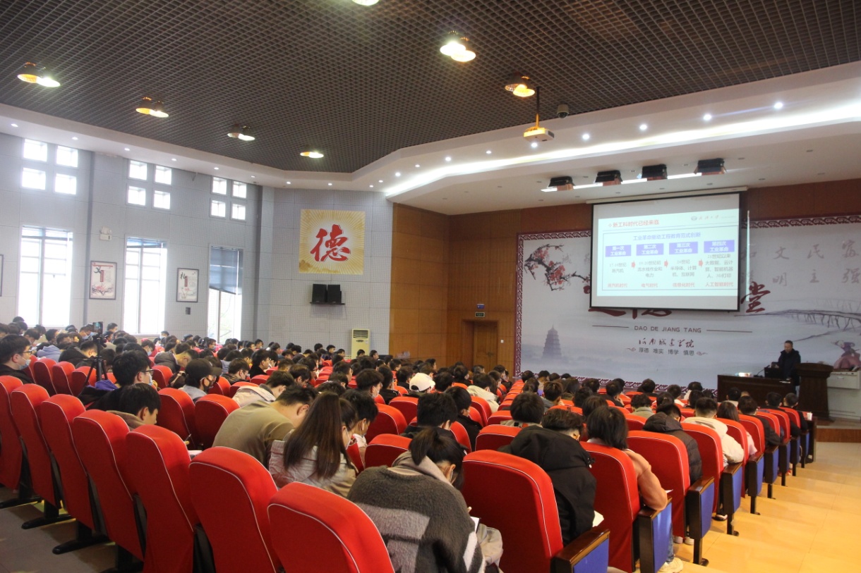 报告会首先由周小平教授作关于“土木工程新工科”的报告,在报告中,周教授指出:在新工科背景下,未来的土木工程学科会融入越来越多其他相关学科的内容,互联网和工业智能与传统土木工程的结合将愈发紧密,本科生在学习专业知识的同时,也应该勤于思考,拓宽自身的视野和知识面,才能跟上这个不断创新的时代,并鼓励学生们认真学习,积极进取,创造辉煌人生。