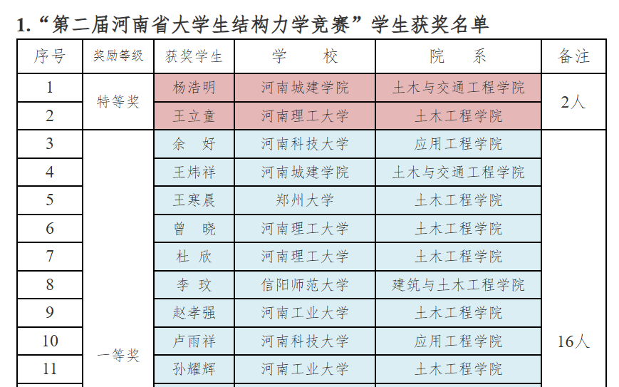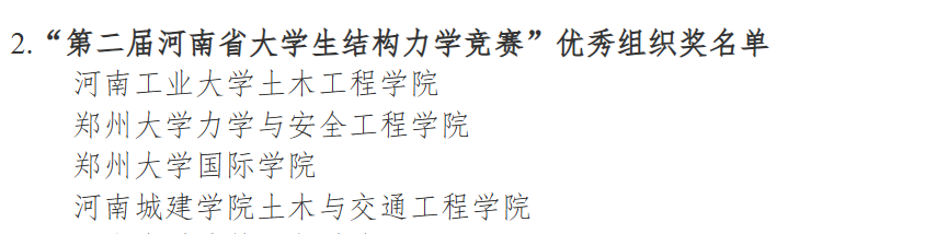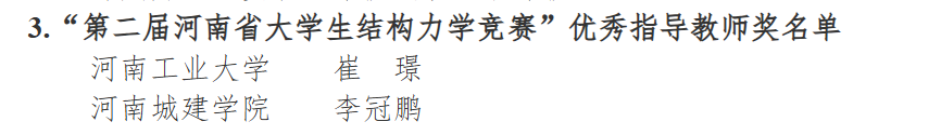我院2022级土木工程专业杨浩明斩获特等奖,获奖金1000元;2022级土木工程专业王炜祥荣获一等奖,获奖金200元;土木与交通工程学院获优秀组织奖,一名教师获优秀指导教师奖。我院曾经在2024年第八届中南结构力学竞赛中获河南赛区一等奖一项(河南省排名第一),第一届河南省结构力学竞赛一等奖2项。彰显了我院在基础力学人才培养领域的持续领先优势。